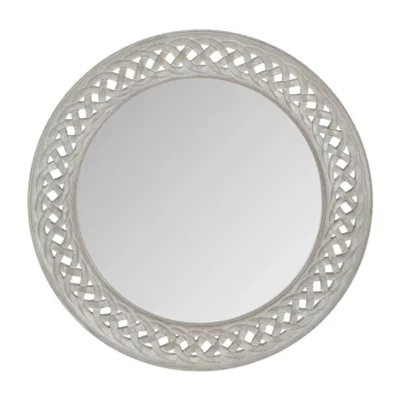 An ancient Roman jewelry motif inspired the round Braided Chain mirror by Safavieh, a beautiful accessory for a touch of luxury in any room. Artfully carved to replicate the chain sennit. Destined to become a family heirloom, this graceful piece will be the focal point of the wall it adorns.