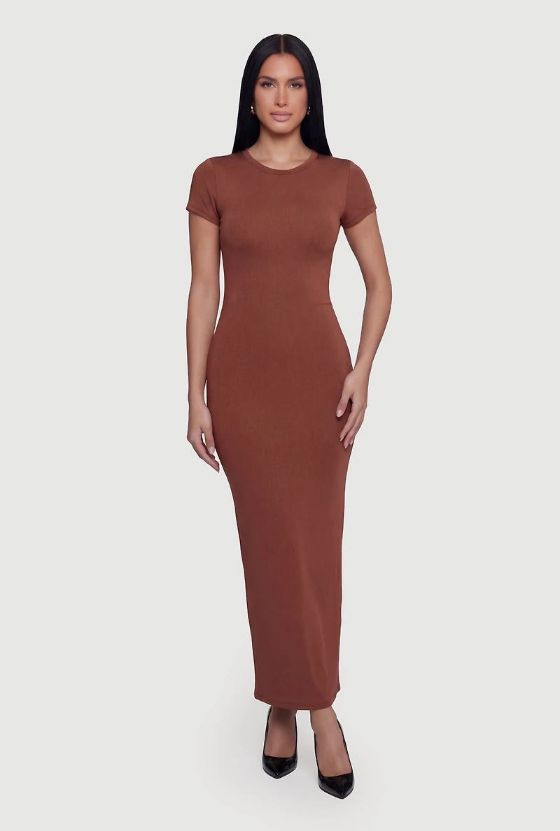 Short Sleeve Crew Neck Slit Back Maxi Dress