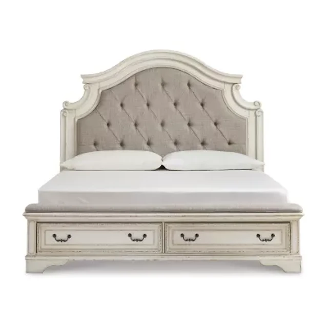 Signature Design by Ashley Realyn Upholstered Panel Bed with 2 Storage Drawers Chipped White