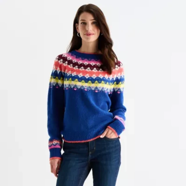 St. John's Bay Womens Crew Neck Long Sleeve Striped Pullover Sweater