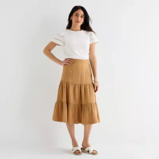 St. John's Bay Womens Tall Mid Rise Midi A-Line Skirt