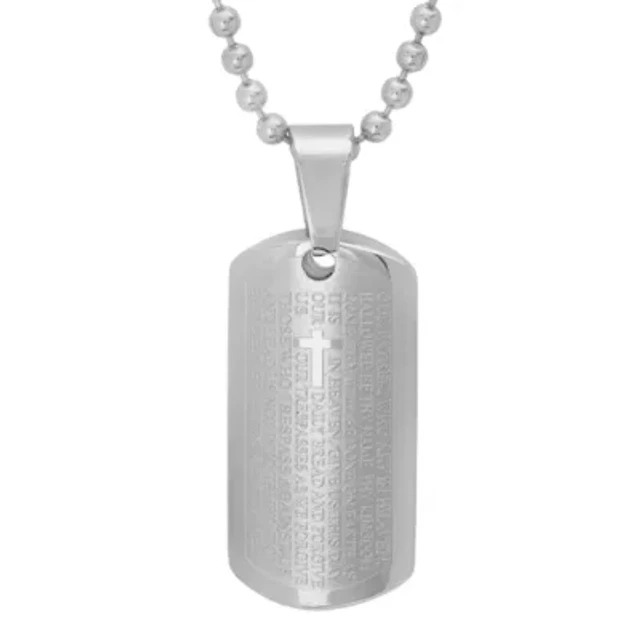 Steeltime Lord'S Prayer Mens Stainless Steel Cross Dog Tag 24 Inch Pendant Necklace
