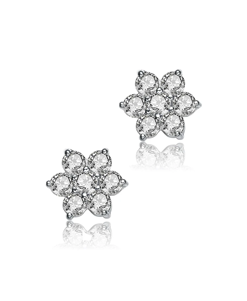 Sterling Silver Clear Round Cubic Zirconias Flower Shape Earrings
