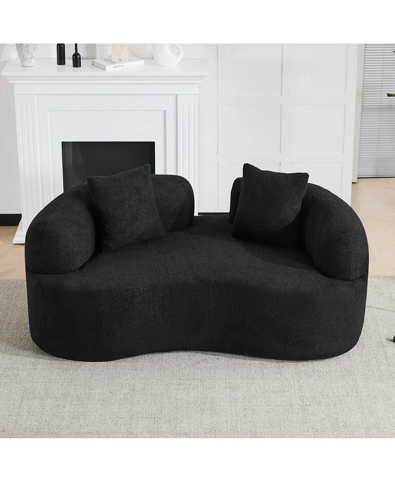 Experience modern elegance with our curved couch. Its 66.93'' heart-shaped design, medium-firm cushions, and durable teddy fabric offer comfort and style. Arrives fully assembled for immediate enjoyment.