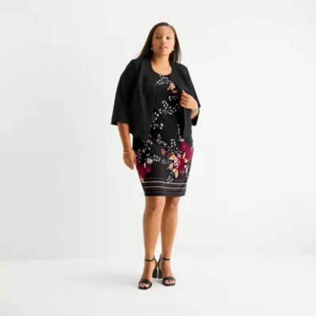 Danny & Nicole Womens Plus Floral Midi Jacket Dress