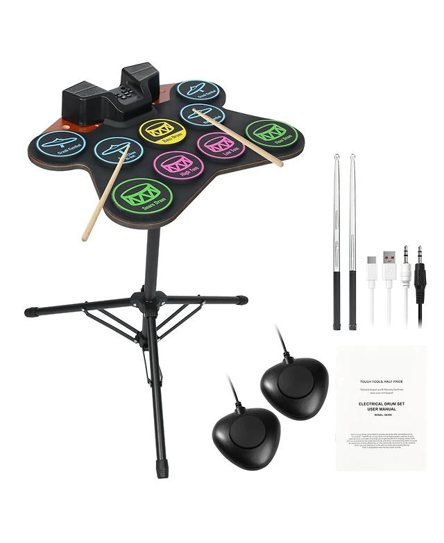 Sugift Roll-Up Electric Drum Set 9 Pads with Stand Pedals Light-Up Sticks