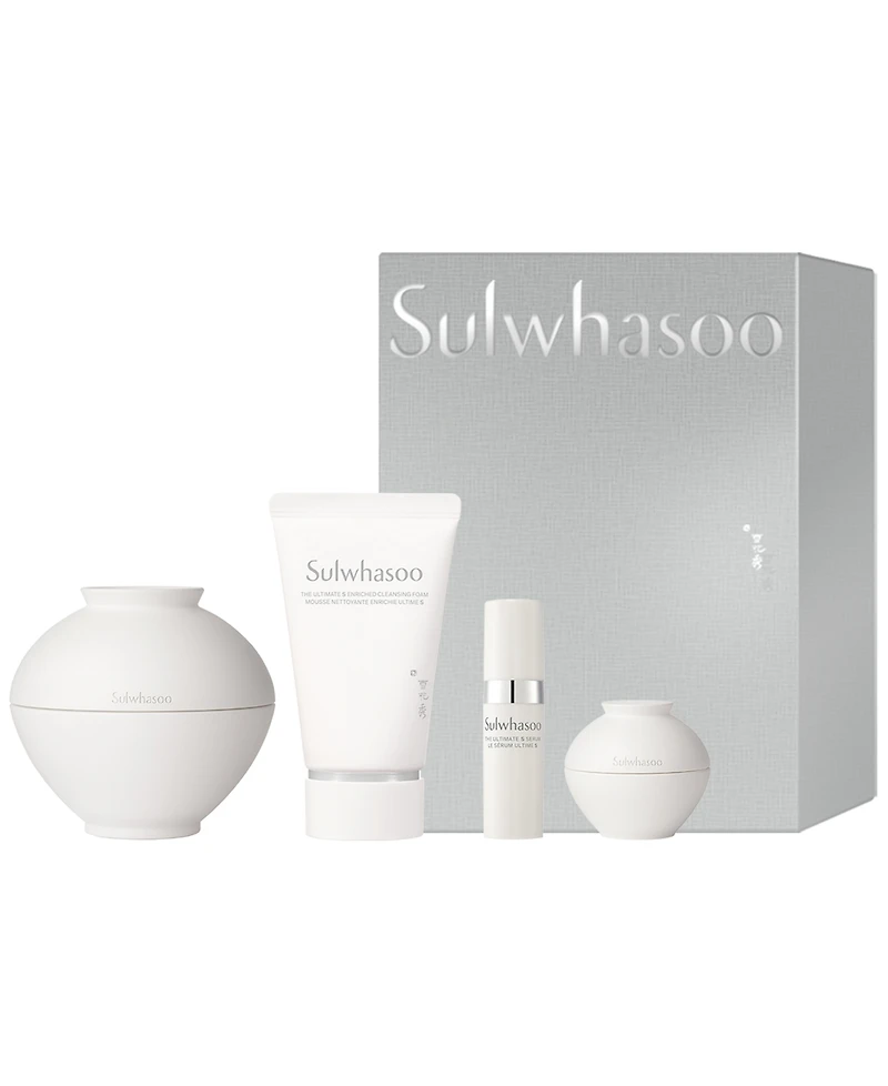 Experience elevated luxury with this Sulwhasoo The Ultimate S cream rich set featuring some of the brand's most prestigious favorites. Begin with the gentle yet effective Ultimate S foam, then apply the potent Ultimate S serum to help visibly lift and firm the look of skin. The eye cream helps target signs of aging around the eyes. The full size of The Ultimate S cream rich, Sulwhasoo's most indulgent anti-aging cream, combines ginseng berry Sr with retinol to help address deep wrinkles and improve the look of firmness and contour.