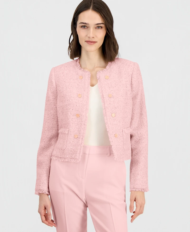 Tahari Asl Women's Fringed Boucle Cropped Jacket