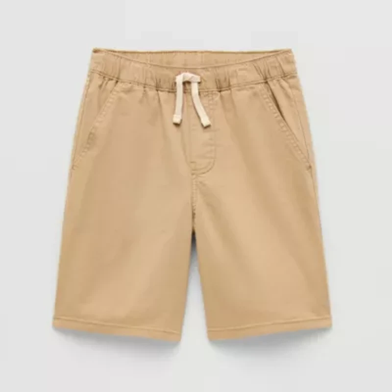 These Thereabouts little and big boy's shorts are a stylish everyday pair he can wear with a tee or polo shirt in warmer temps. Made from cotton-canvas, this style has an elastic-drawstring waist and multiple pockets.