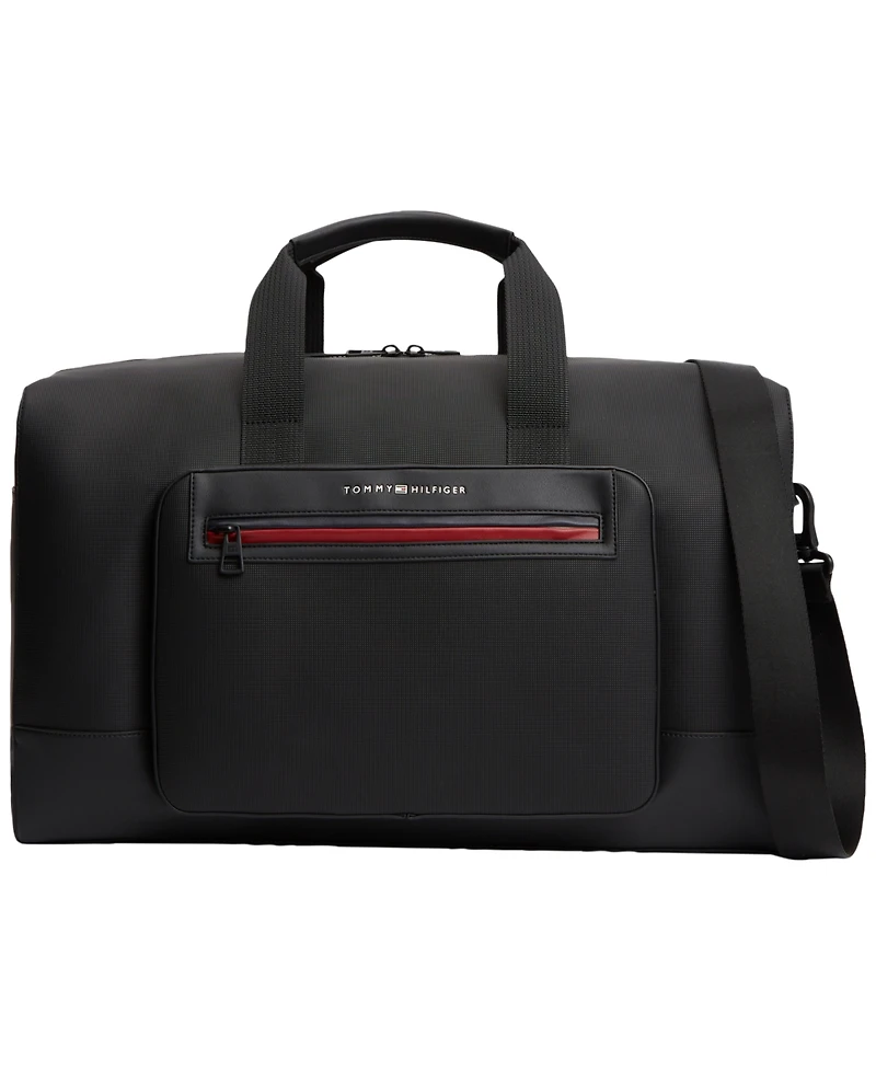 Spacious and versatile, this Tommy Hilfiger duffel bag features both a handle and a strap for easy, comfortable carrying. Two zippered compartments provide organized storage for your essentials while on the go.
