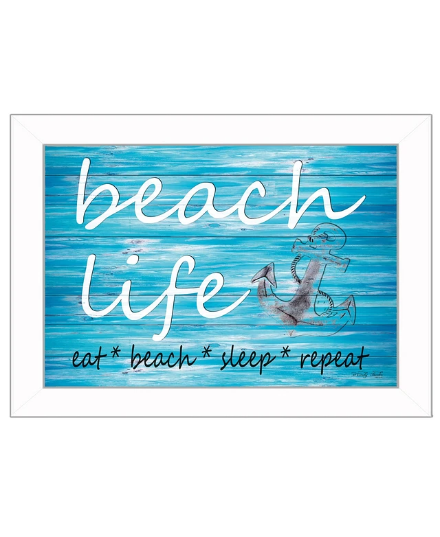 Trendy Decor 4U Beach Life By Cindy Jacobs, Printed Wall Art, Ready to hang, White Frame, 14" x 10"