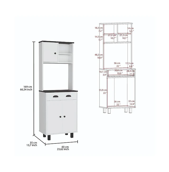 Tuhome Herrin Multistorage Kitchen Pantry White/Black Mdf