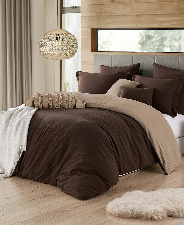 Ultra Soft Reversible Crinkle Duvet Cover Set, Full/Queen
