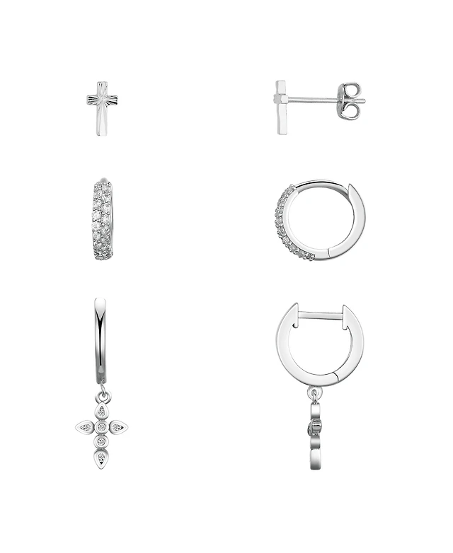 Unwritten Cubic Zirconia Cross Stud and Hoop Earring Set