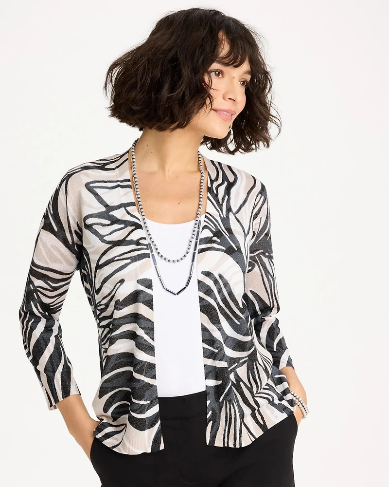The perfect vacation cardigan — our customer-loved Summer Romance Cardigan is back. Newly showcasing an elevated pointelle-trim placket for added depth and style and a must-have tropical nights motif. This breathable, lightweight cardi is made with a dry hand feel and side-slits for ease of wear.