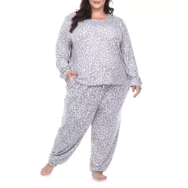 White Mark Womens Round Neck Long Sleeve 2-pc. Plus Pajama Sets