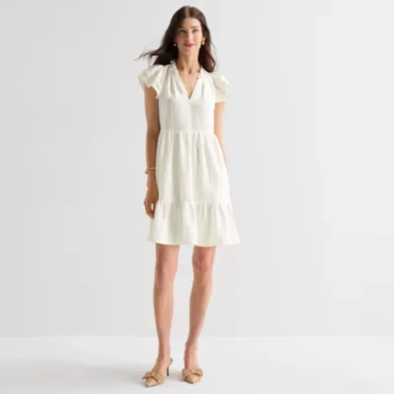 Willow Glenn Womens Short Sleeve Embroidered Babydoll Dress