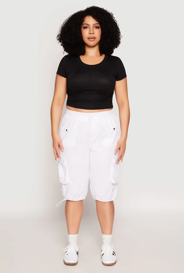 Plus Poplin Toggle Drawstring Cargo Capri Pants