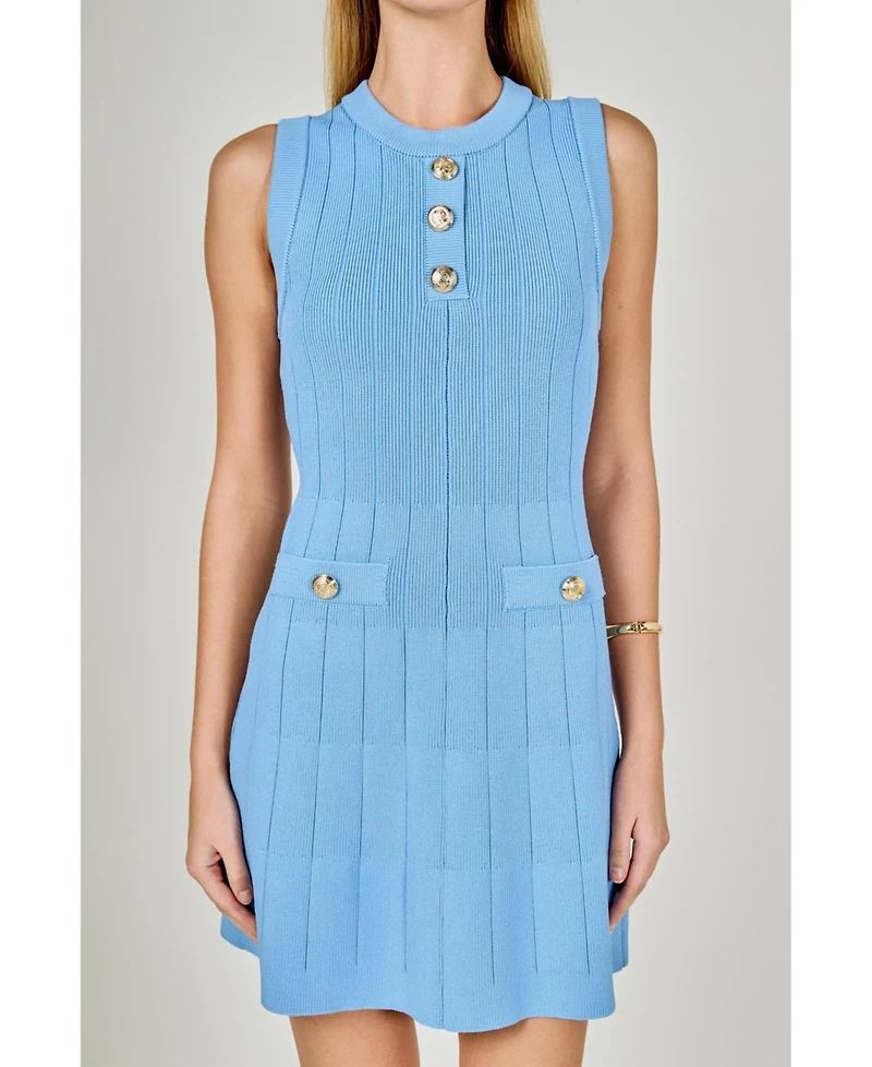 Women's Shank Button Knit Mini Dress