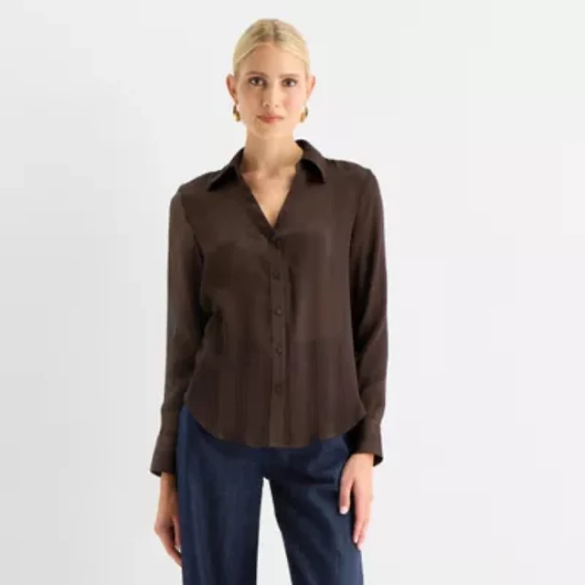 Worthington Womens Fitted Long Sleeve Regular Fit Button-Down Shirt