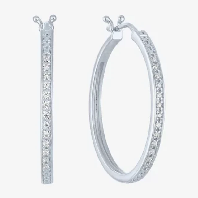 Yes, Please! (G-H, Si2-I1) Womens 1/10 CT. T.W. Lab Grown White Diamond Sterling Silver 25mm Hoop Earrings