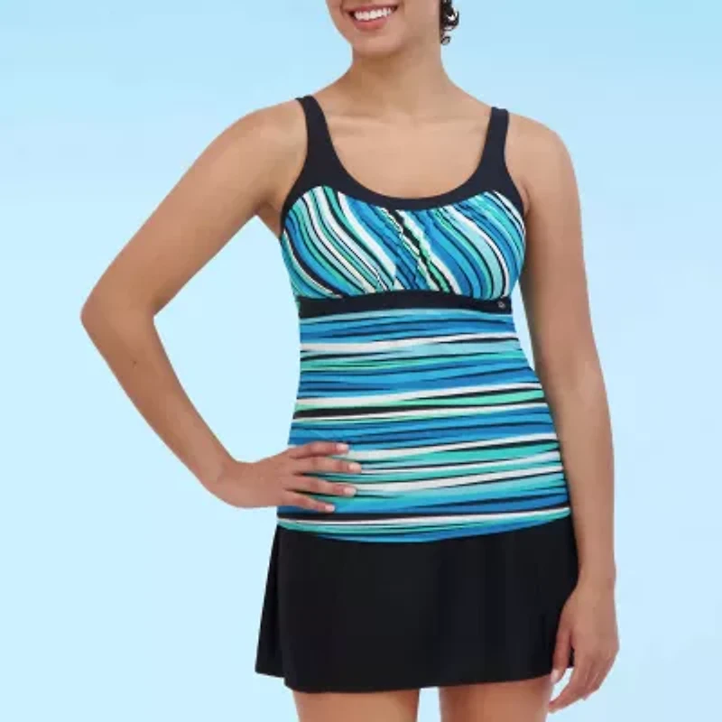 This ZeroXposur women's tankini swimsuit top offers comfort and style for all your beach or poolside activities. Crafted from stretch-knit with a vibrant striped print, it includes wide straps ensuring comfortable all-day wear.
