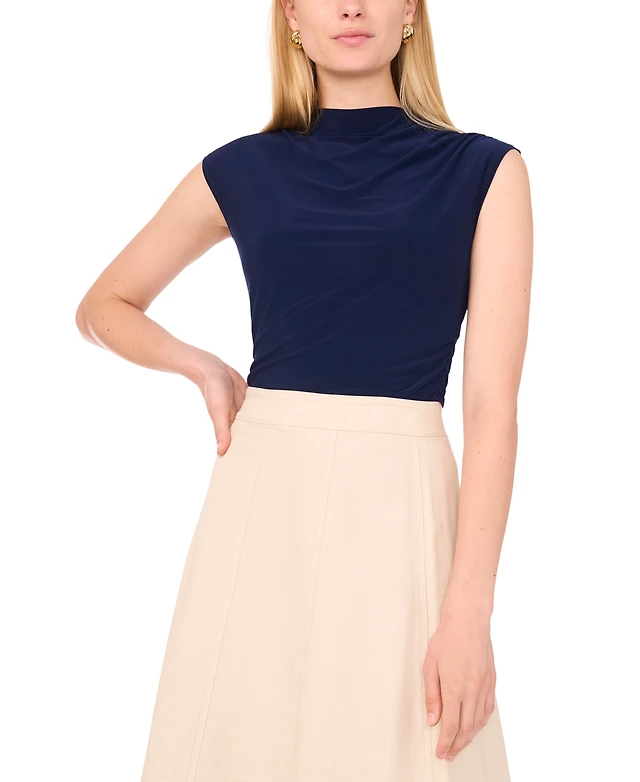 1.state Women's Draped Sleeve Mock Neck Knit Top