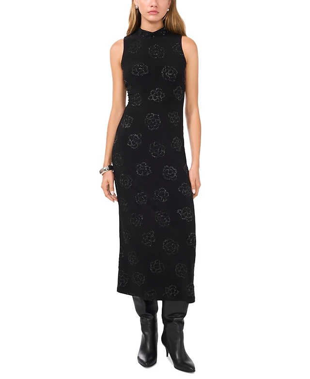 1.state Women's Embellished Mock Neck Sleeveless Midi Dress