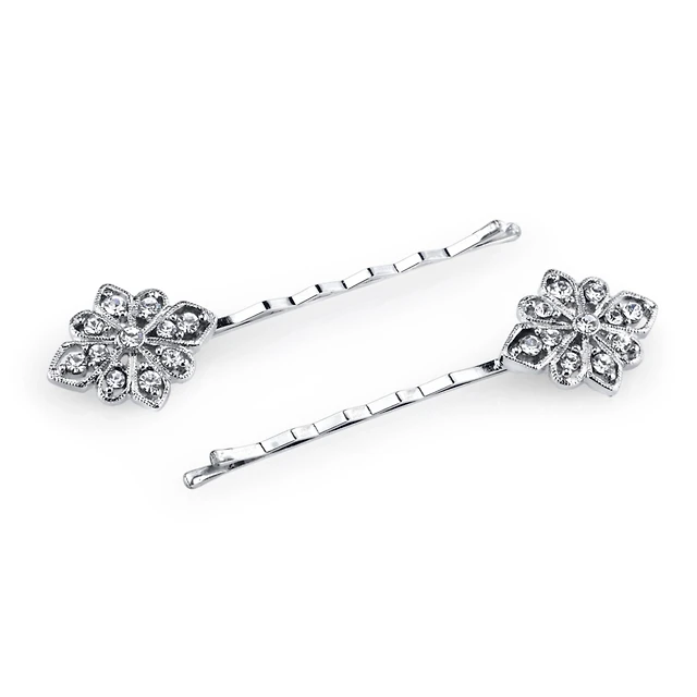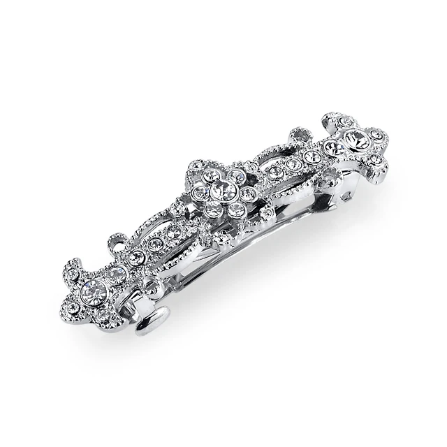 2028 Silver-Tone Crystal Oval Flower Drop Earrings