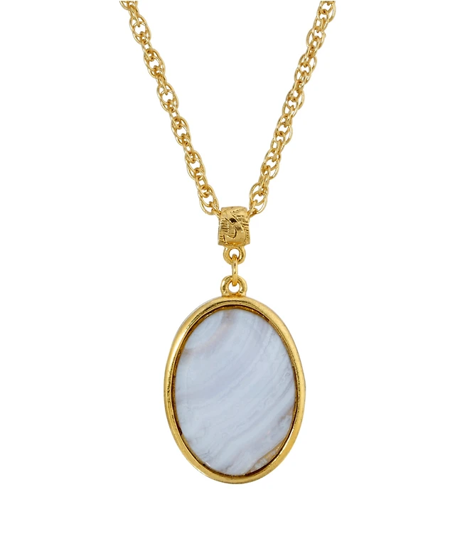 2028 14K Gold Plated Semi Precious Lace Agate Oval Pendant Necklace