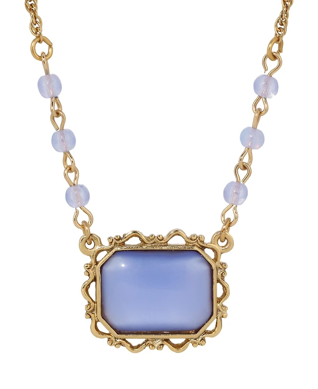 2028 Gold Tone Green Moonstone Crystal Oval Pendant Necklace