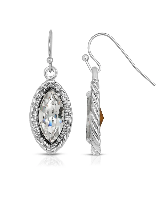 2028 Silver-Tone Crystal Oval Drop Earrings