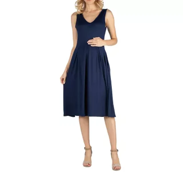 24Seven Comfort Apparel Knee Length Fit N Flare Maternity Dress with Pockets
