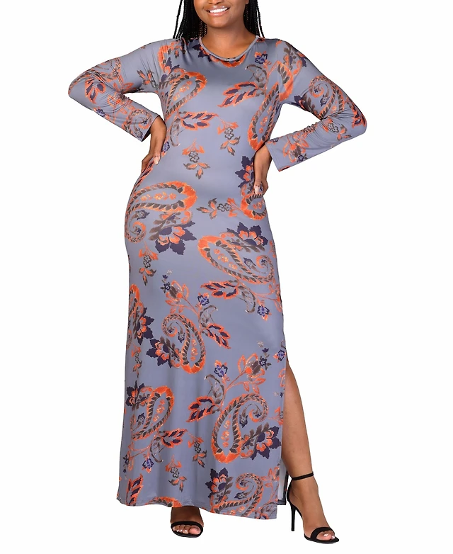24seven Comfort Apparel Plus Floral Long Sleeve Maxi Dress
