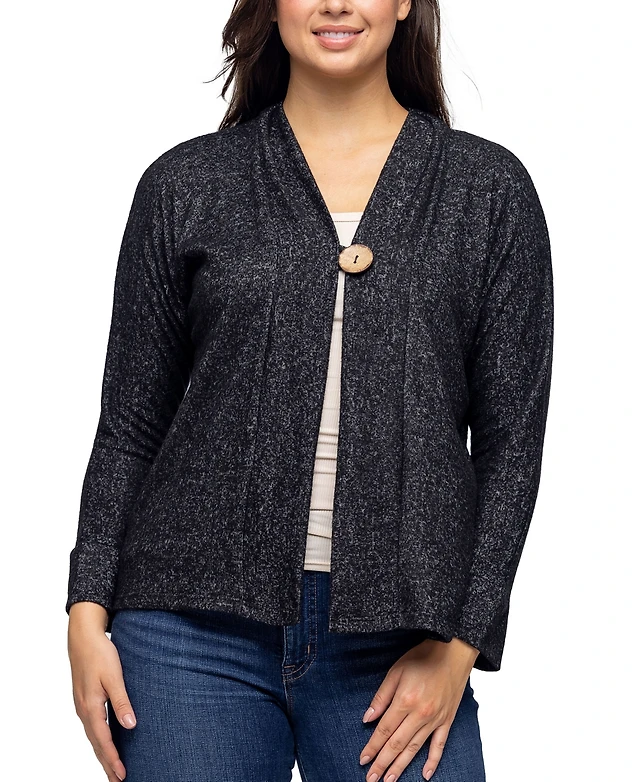 24seven Comfort Apparel Plus Button Front Long Sleeve Cardigan Sweater