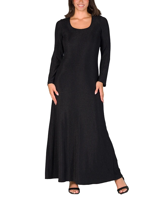 24seven Comfort Apparel Women's Long Sleeve Scoop Neck Shimmery Fabric Maxi Dress