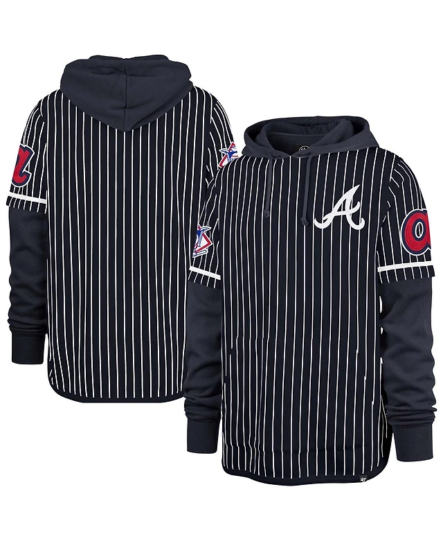 '47 Brand Men's Navy Atlanta Braves Pinstripe Double Header Pullover Hoodie