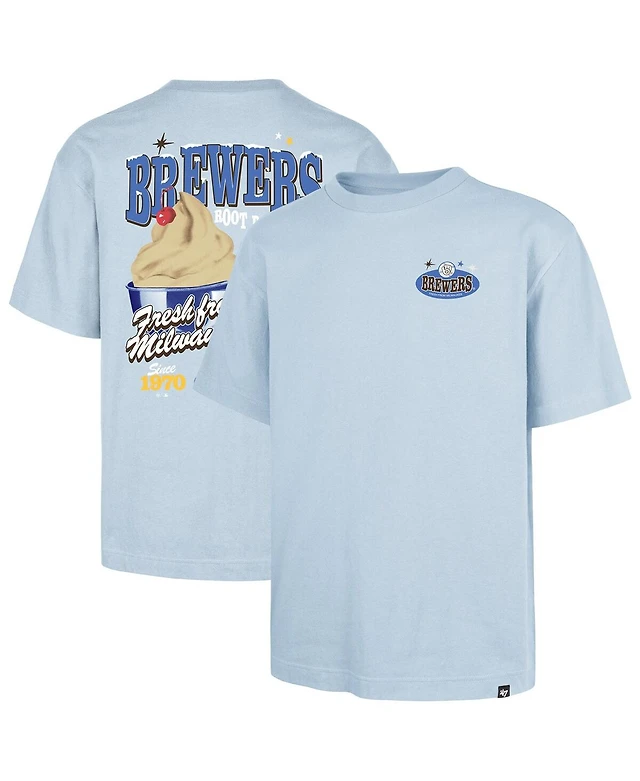 '47 Brand Men's Light Blue Milwaukee Brewers Ice Cream Parlor Foundation T-Shirt