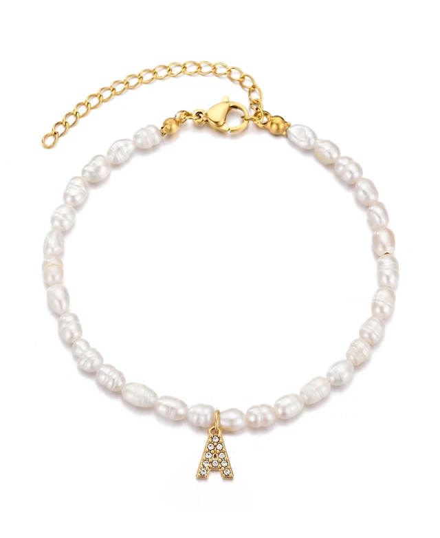 Adornia Gold Freshwater Cultivated Pearl Cubic Zirconia Letter Bracelet
