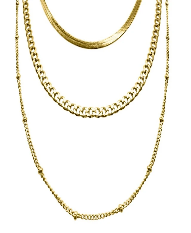 Adornia Gold Tarnish Resistant Adjustable 9-11" Herringbone, Valentina and Mariner Chain Anklet Set
