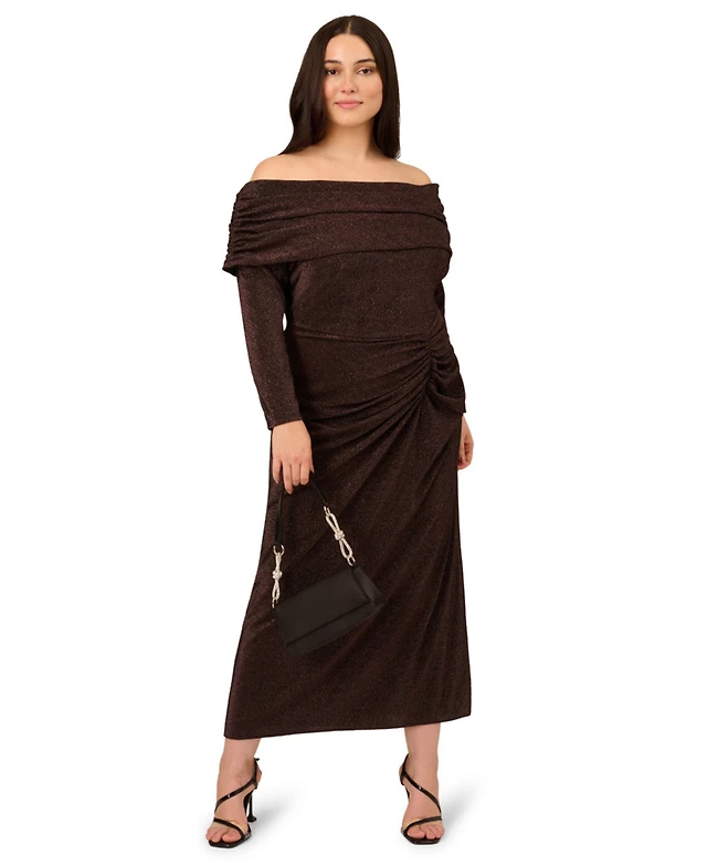 Adrianna Plus Off-The-Shoulder Column Gown