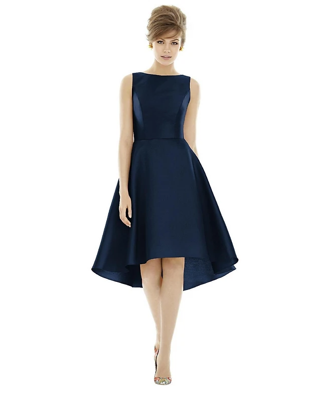 Alfred Sung Women's Strapless Satin High Low Dress with Pockets