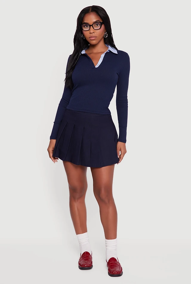 Ribbed Knit Long Sleeve Mini Dress