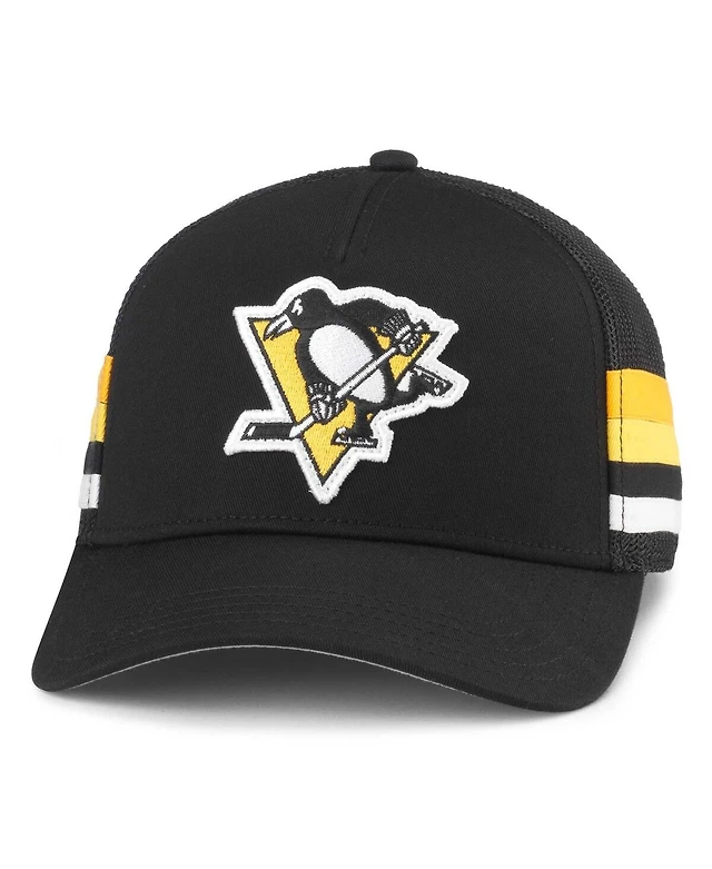 Men's American Needle Black Pittsburgh Penguins HotFoot Stripes Trucker Adjustable Hat