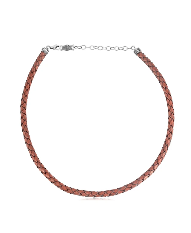 Sterling Silver Black Leather 3 Bead Necklace, 17 to 20 Inches