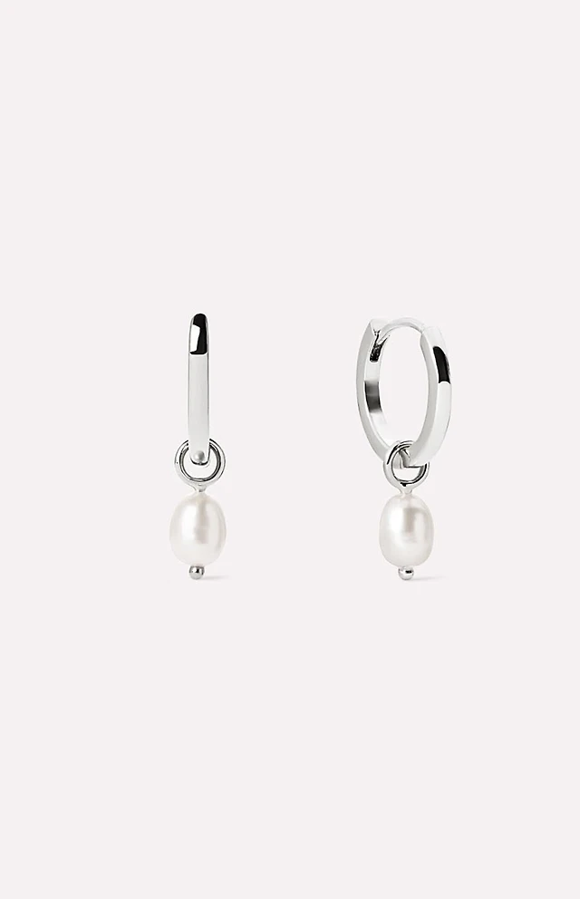 Ana Luisa Frida Silver Pearl Huggie Hoop Earrings