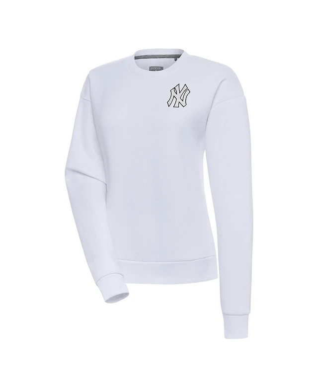 Antigua Women's White New York Yankees Brushed Metallic Victory Pullover Sweatshirt