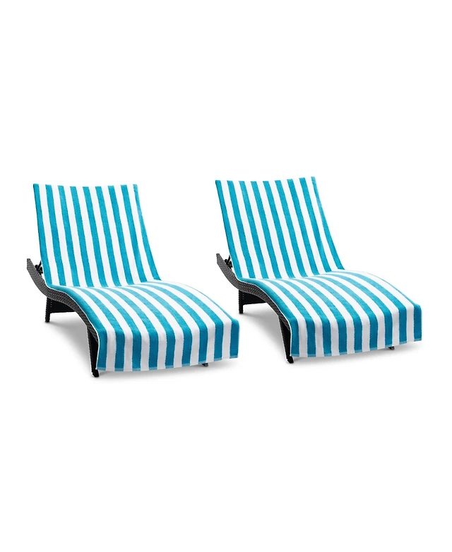 Arkwright Home California Cabana Chaise Lounge Covers (2 Pack), Striped Color Options, 30x85 in. with 8" Fitted Pocket for Beach or Pool Chair