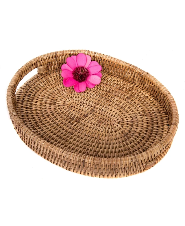 Artifacts Trading Company Rattan Oval Tray With Cutout Handles Collection