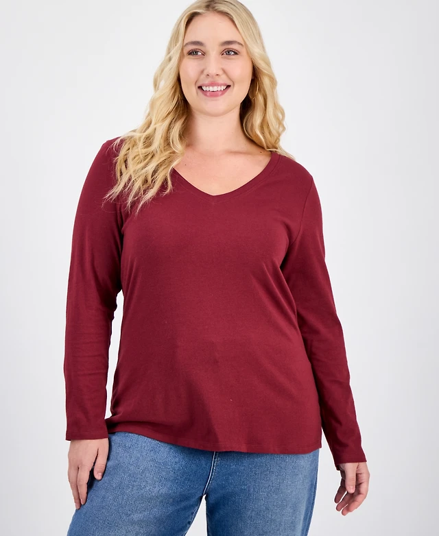 Trendy Plus Fitted V-Neck T-Shirt
